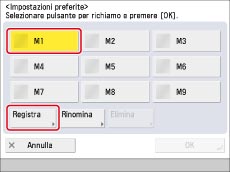 Per rinominare un pulsante, selezionarlo → premere [Rinomina] → immettere il nome.