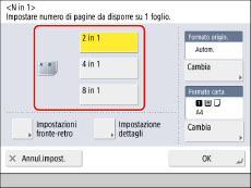 Se si imposta [N in 1], verrà impostato automaticamente anche il modo Spostamento al centro.