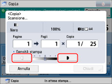 Se è stata variata la densità in [Opzioni], la regolazione della densità durante la copiatura potrebbe non essere applicata nella stampa.