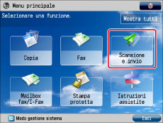 Se si utilizza il modello imageRUNNER ADVANCE C3320, per utilizzare la funzione Scansione e invio sono necessari prodotti opzionali. Per informazioni sui prodotti opzionali necessari per l'utilizzo di questa funzione, vedere "Prodotti opzionali necessari per ciascuna funzione".