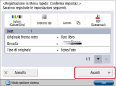 Per impostare la password nelle impostazioni memorizzate nel pulsante registrato, se si importano spesso impostazioni in un Pulsante personale o un Pulsante condiviso verso un'altra macchina e si desidera evitare l'utilizzo da parte di altri utenti, non includere una password durante la registrazione.
