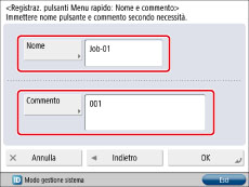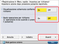 Durante la registrazione delle impostazioni in un Pulsante personale o in un Pulsante condiviso nel Menu rapido è possibile selezionare se includere la seguente password :