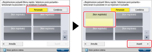 Il numero di pulsanti personalizzati che è possibile registrare potrebbe essere inferiore al massimo, a seconda dell'utilizzo della memoria della funzione Menu rapido.