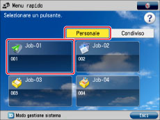 Se durante la registrazione del Menu rapido la voce <Visualizzazione schermata conferma richiamo> per le impostazioni richiamate è impostata su 'Off', prima di elaborare le impostazioni registrate nel pulsante non viene visualizzata la finestra di dialogo di conferma. (Vedere "Registrazione di un pulsante personalizzato/pulsante condiviso".)