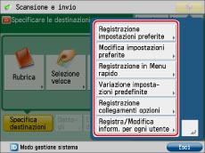 Registrazione/modifica/eliminazione dei pulsanti Impostazioni preferite per Scansione e invio
