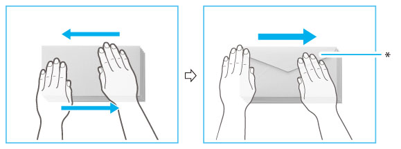 Se non si allineano le buste prima di caricarle, la carta potrebbe non venire alimentata correttamente o incepparsi. Sistemare eventuali arricciature o pieghe delle buste e caricarle verificando che non siano presenti buste attaccate.