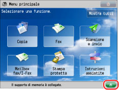 Per rimuovere il supporto memoria dalla macchina, attenersi alla seguente procedura. Se il supporto memoria viene rimosso dalla macchina con una procedura diversa da quella riportata di seguito, potrebbero verificarsi danni al supporto memoria e alla macchina.