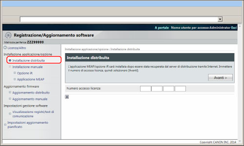A seconda dell'opzione di sistema/applicazione MEAP installate, è possibile scaricare il manuale o i software ad esse correlati dall'URL visualizzato sullo schermo dopo l'installazione.