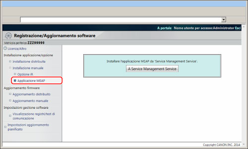 Acquisire un file di licenza per installare un'opzione di sistema/applicazione MEAP utilizzando l'IU remota.