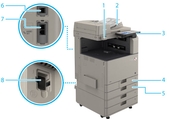 Gli originali acquisiti dal relativo vassoio vengono emessi nell'area di consegna degli originali.