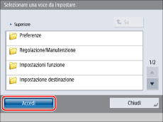 Alfabetico], le voci visualizzate nell'elenco a comparsa <Destinazione accesso> vengono visualizzate in ordine alfabetico inverso e il pulsante diventa [ Alfabetico].Se si preme [