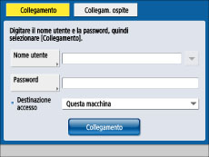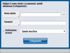 Se si utilizza Autenticazione server + Autenticazione periferica locale, selezionare la destinazione di accesso dall'elenco a comparsa. Per informazioni sulla selezione della destinazione di accesso, vedere "Come funziona Autenticazione utente".