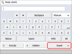 Se si utilizza Active Directory Authentication, è possibile utilizzare solo caratteri alfanumerici e i simboli - _ ` { } ~ ! # $ % & ' ( ) @ ^ per i nomi utente. Sarà possibile accedere solo utilizzando caratteri validi. (Rispettare le lettere maiuscole e minuscole.)