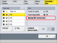 Nella tabella riportata sotto è indicato lo stato del backup.