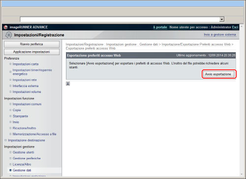 Fare clic su [Preferiti accesso Web] per <Importa/Esporta individualmente> → [Esportazione...].