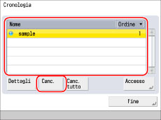 Impostando [ID div/Uten con cronol.] su 'On' in Impostazioni, vengono visualizzati anche l'ID divisione o il nome utente. (Vedere "Impostazioni relative a informativa e normativa sulla privacy".)