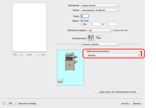 Se si utilizza Mac OS X 10.7 o versione successiva, fare clic su [Mostra dettagli]/[Nascondi dettagli] in fondo allo schermo per visualizzare o nascondere le opzioni.