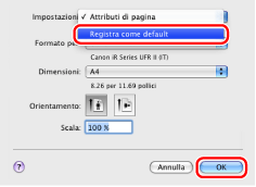 Selezionare [Registra come default] da [Impostazioni] → fare clic su [OK].