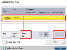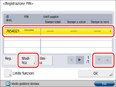 per visualizzare la divisione il cui PIN deve essere variato → selezionare la divisione → premere [Modifica].