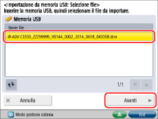 Se la memoria USB è già collegata alla macchina, tale memoria USB sarà riconosciuta come supporto da utilizzare per l'importazione/esportazione, anche se si collega un nuova memoria USB. Premere