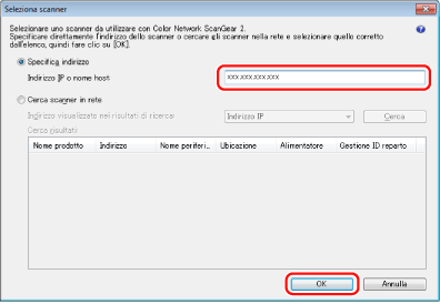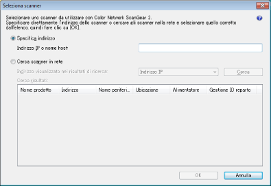 Nell'elenco vengono visualizzati solo gli scanner che si trovano nella stessa sottorete (rete con lo stesso ID di rete) del computer utilizzato.
