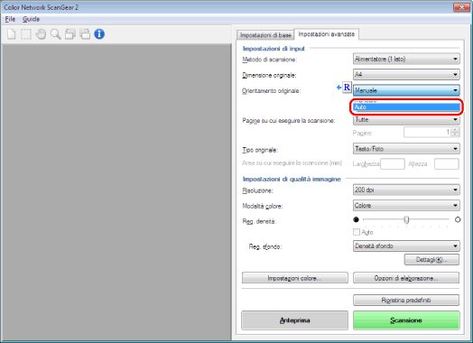 Nella scheda [Impostazioni avanzate], impostare [Orientamento originale].