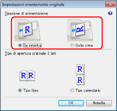 Per gli originali a due facciate, impostare [Tipo di apertura originale 2 lati] in modo da indicare la relazione tra il fronte e il retro.