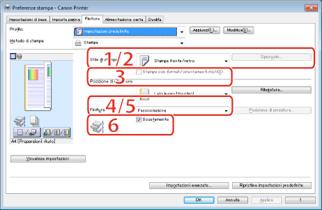 Per informazioni su come visualizzare la schermata del driver della stampante, vedere "Stampa" o "Configurazione delle impostazioni di stampa predefinite".