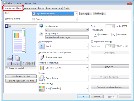 Fare clic su [Impostazioni di base].