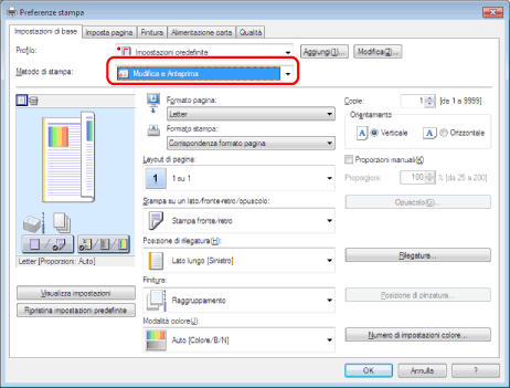 Selezionare [Modifica e Anteprima] da [Metodo di stampa].