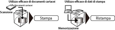 La Mailbox e l'Area di condivisione sono dischi fissi interni che possono essere utilizzati per memorizzare temporaneamente i documenti in attesa di stampa e come posizione di memorizzazione per i documenti acquisiti.