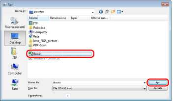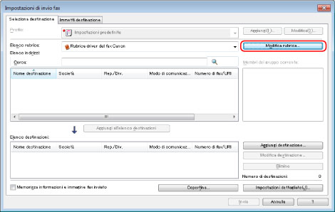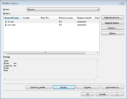 È possibile caricare nella Rubrica dati da file in formato CSV (*.csv) o Rubrica Canon (*.abk).