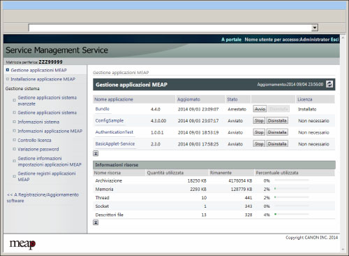 [Gestione informazioni impostazioni applicazioni MEAP]