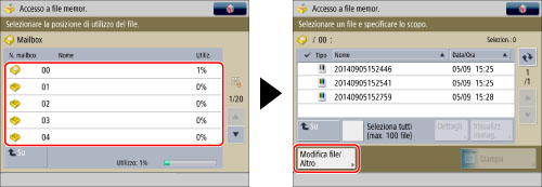 Selezionare la mailbox desiderata → selezionare [Modifica file/Altro].