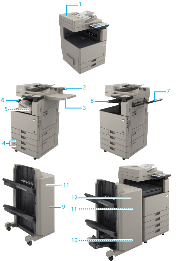 Il Booklet Finisher-U1 prevede le seguenti funzioni: Fascicolazione, Raggruppamento, Sfalsamento, Pinzatura (angolo e doppia e a sella) e Piegatura a sella.