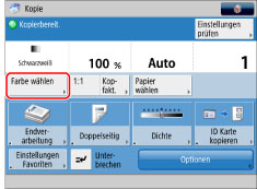 Wenn [Vollfarbe verwenden] in [Farbeinstellungen für Kopie wählen] deaktiviert ist, wird [Vollfarbe] nicht angezeigt. (Vgl. Abschnitt "Einschränken der Verwendung von Vollfarbe".)