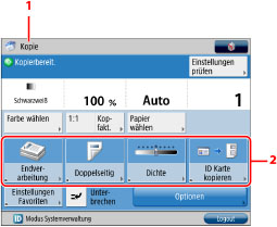 Sie können die auf jedem Funktionsdisplay angezeigte Kurzwahltaste [Optionen] speichern. Nur am Display Kopie können Sie die Kurzwahltasten [Optionen] und [Einstell. Favoriten] speichern. Gespeicherte Kurzwahltasten werden in jedem Funktionsdisplay angezeigt.