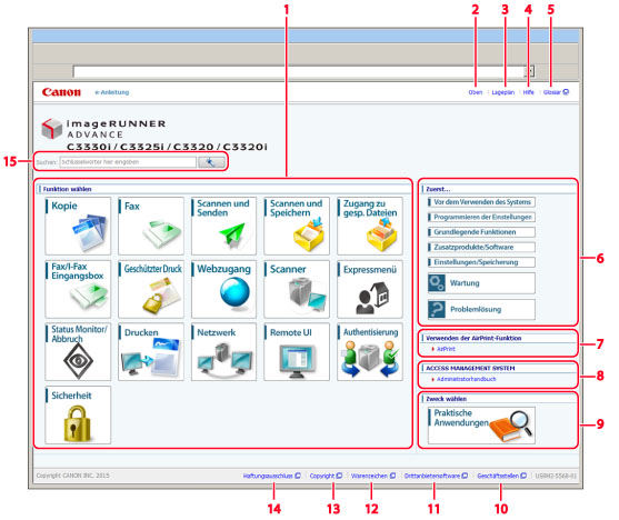 Die oberste Seite der e-Anleitung wird angezeigt. |