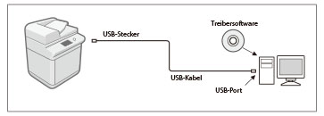 Installieren Sie die erforderlichen Treiber. (Nähere Informationen zum Druckertreiber finden Sie im Abschnitt "Drucken von einem Computer aus (Windows)" oder "Drucken von einem Computer aus (Mac OS)". Nähere Informationen zum Faxtreiber finden Sie im Abschnitt "Senden eines Fax von einem Computer (Windows)".)