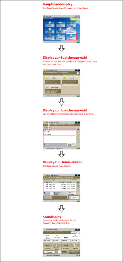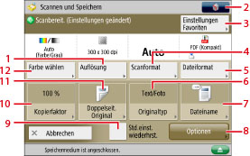 Berühren Sie diese Taste, wenn Sie Scaneinstellungen abrufen oder häufig verwendete Einstellungen in den <Einstellungen Favoriten> speichern möchten.