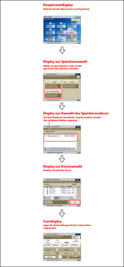 Ihr Original wird gescannt und auf dem Speichermedium gespeichert.