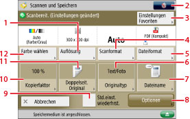 Berühren Sie diese Taste, um Scaneinstellungen abzurufen oder häufig verwendete Einstellungen in den <Einstellungen Favoriten> zu speichern. |
