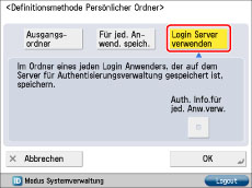 Der Administrator wählt [Login Server verwenden] als Methode zum Festlegen persönlicher Ordner aus.