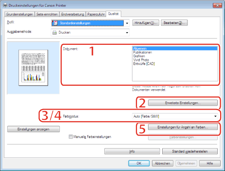 Nähere Informationen zum Anzeigen des Druckertreiber-Bildschirms finden Sie unter "Drucken" oder "Konfigurieren der Standard-Druckeinstellungen".