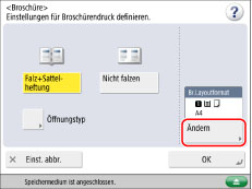 Sie können [Falz/Heftpos. ändern] nur einstellen, wenn Sie [Falz+Sattelheftung] auswählen.