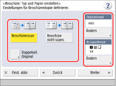 Wenn Sie die Funktion [Broschürenscan] nicht verwenden, können Sie nicht [Auto] für das Original wählen.