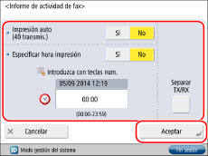 Para más información acerca del informe de actividad de fax, consulte "INFORME DE ACTIVIDAD TX/RX FAX".