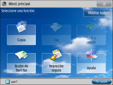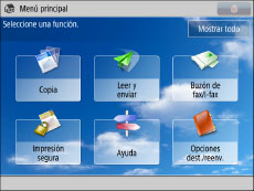 Si pulsa [Mostrar todo] en la pantalla Menú principal, todos los botones aparecen en el orden prefijado aunque haya cambiado la disposición de dichos botones. Para volver a la pantalla personalizada, pulse de nuevo [Mostrar todo].