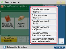Para más información acerca de cómo guardar y editar opciones favoritas, consulte lo siguiente: