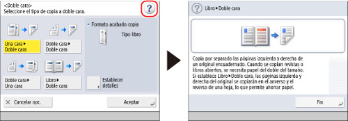 Siempre que aparezca en la pantalla táctil, puede consultar una explicación detallada de la función y sus opciones.